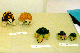| 黄ガメは福成さんが義母愛子さんの為に作った特別の品。黄色は金運にご利益があり。首から下げた五縁玉ネックレスに、これまた五縁玉がざっくざっくと溢れ出すガマ口付き。赤ガメは健康運に良いらしい。両方ともに、ご利益にあずかろうという人が続出。 |